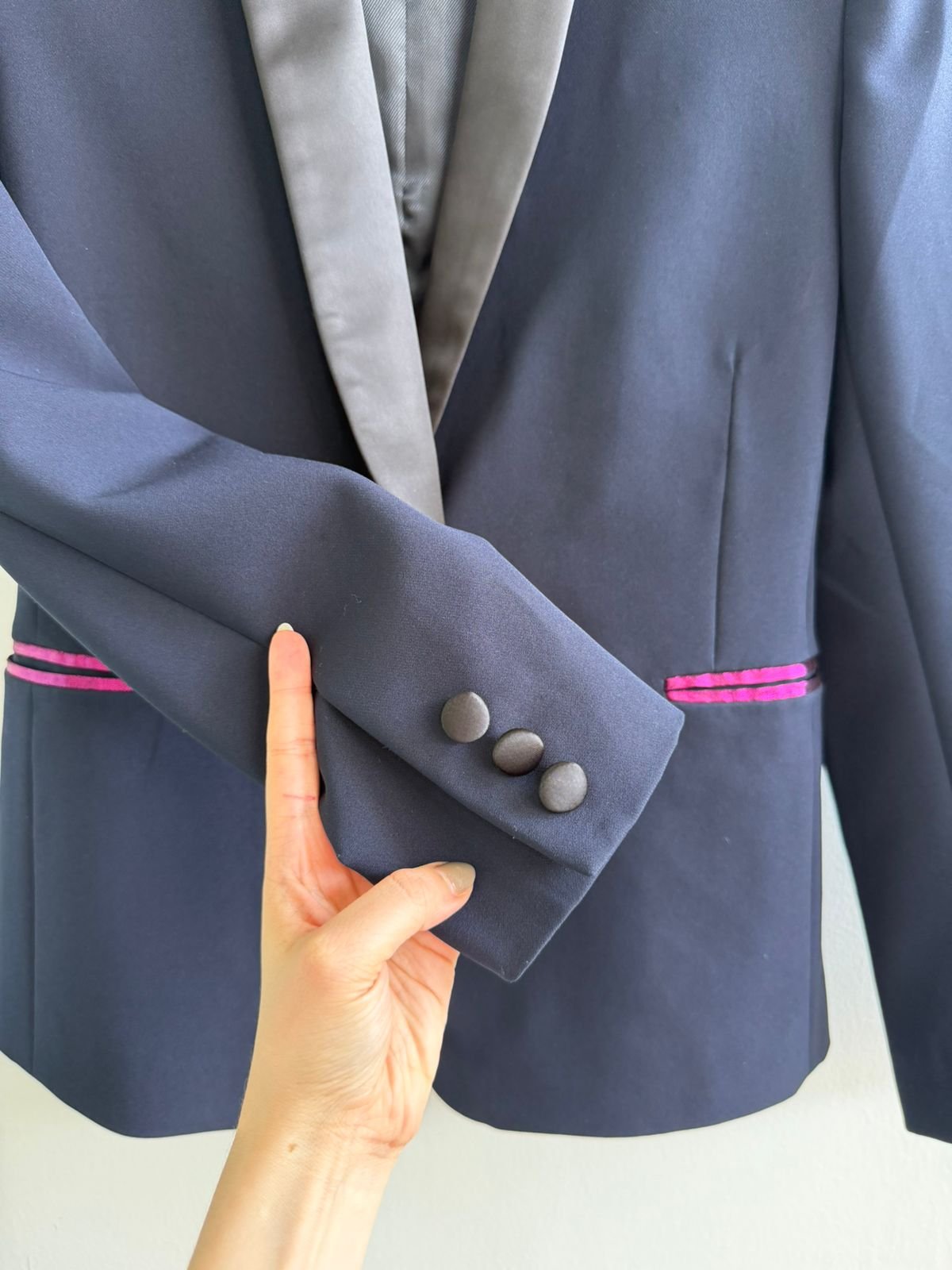 Exclusivo Blazer Atelier Crump en un impactante tono turquesa. Una pieza de diseño de autor que destaca por sus bolsillos decorados con brillo, combinando sastrería impecable con un toque de lujo moderno.