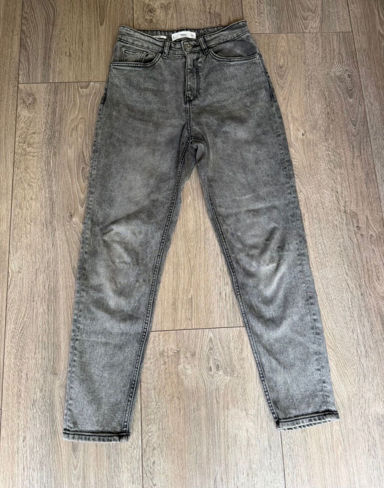 Jeans mom de Mango en tono gris lavado, cómodos y fáciles de combinar. Un básico moderno para usar todos los días.