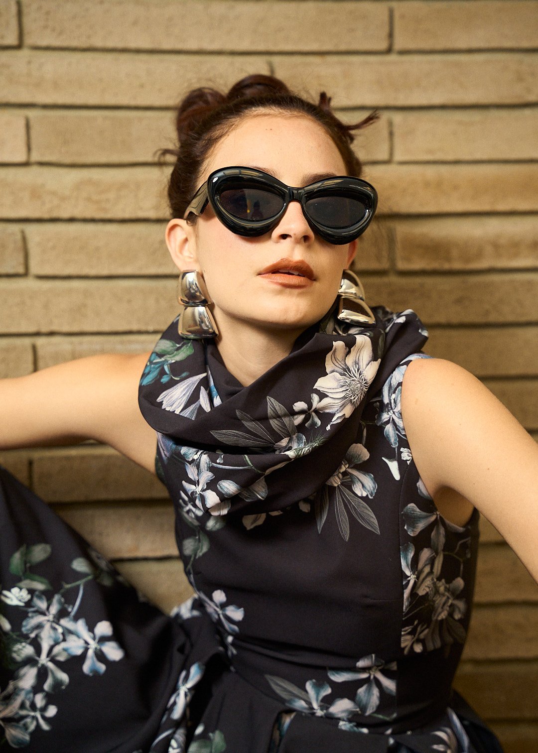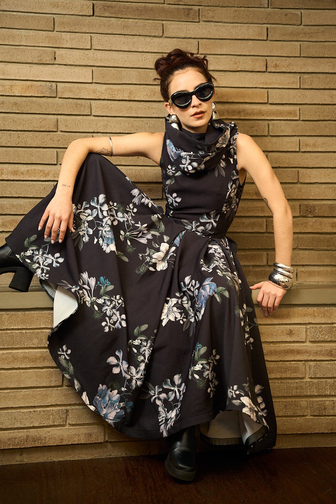 Vestido largo estampado flores del diseñador Guarnizo Lizarralde