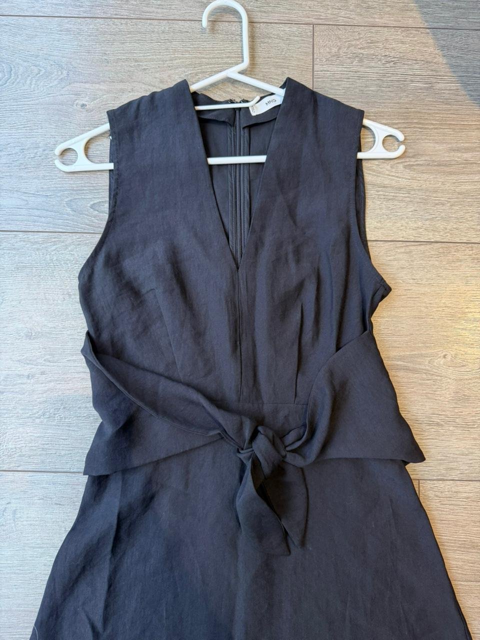 Elegante vestido largo negro MANGO con sofisticado detalle de nudo frontal en la cintura. Su diseño minimalista y silueta fluida lo convierten en el «básico de lujo» perfecto para cualquier ocasión.