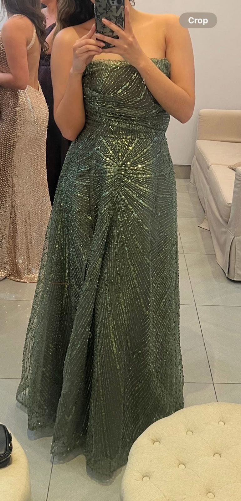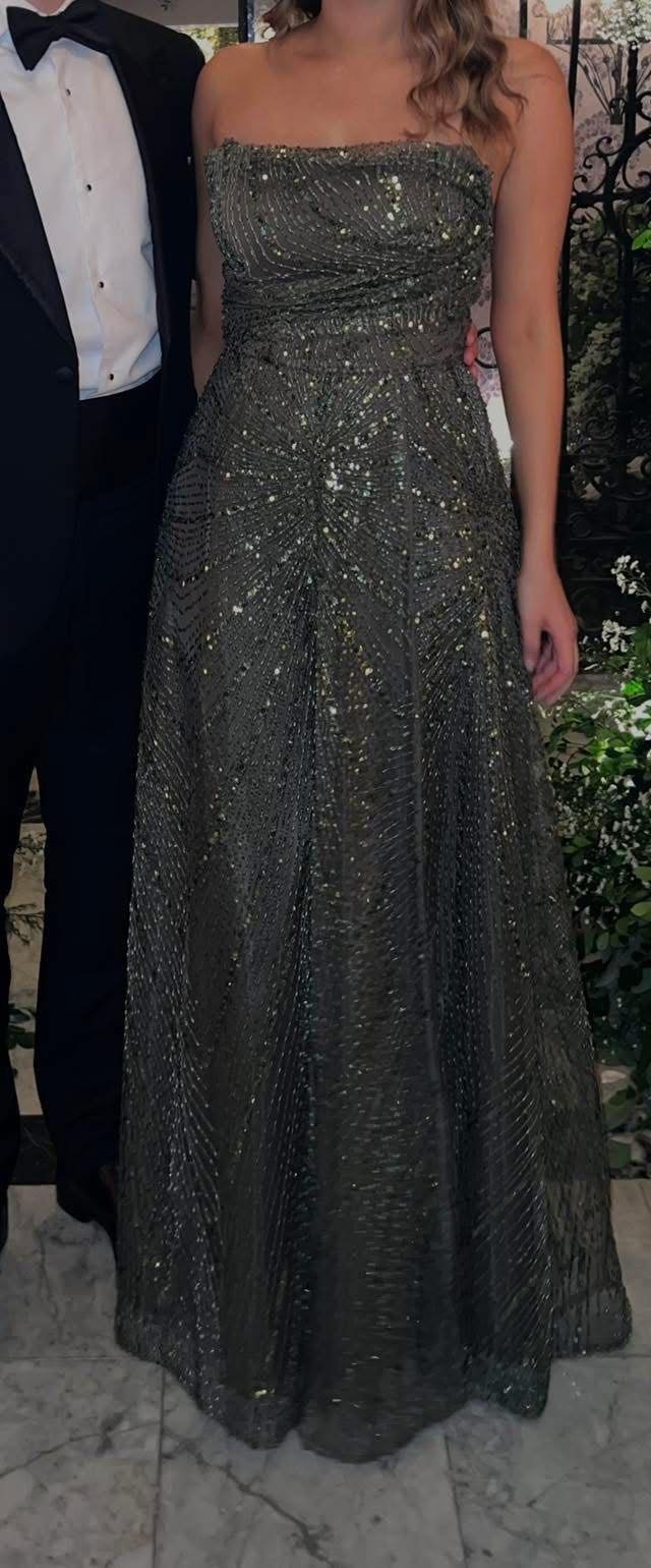 Vestido strapless de fiesta – Verde con pedrería – Talla S-M